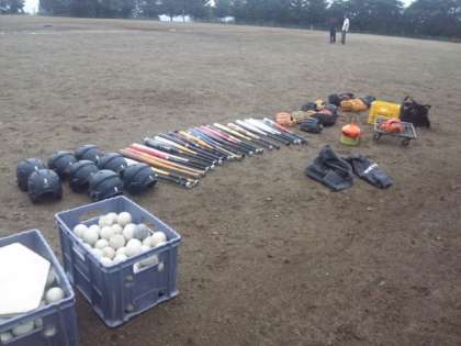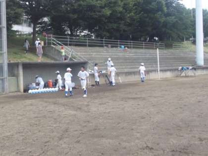 和田中学校合同で、外野と内野に分かれての練習です。