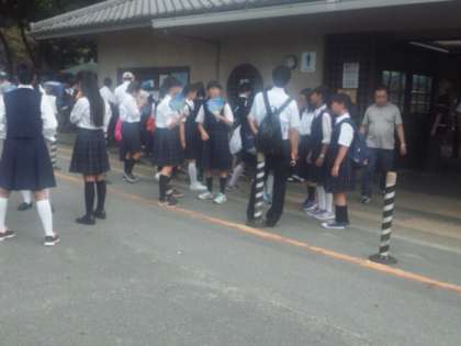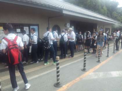 ガイドさんや先生にインタビューしている人も。疲れて、あきらめたらしい人も。