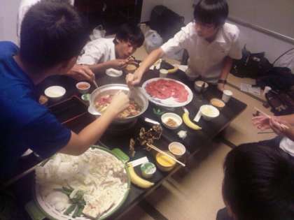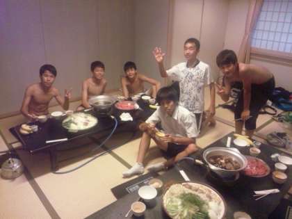 ちょっと早い夕食です。お昼でお腹いっぱいで、食欲が今一歩という人もいるようですが、しっかり頑張っている人もいます。