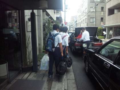 子どもたちが出発すると同時に、次の車がやって来ます。その連携は素晴らしいです。かなり手前で待機してるのでしょうが。