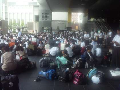 京都駅には、数多くの中学校が集まって来ています。こから見渡すかぎり中学生でいっぱいです。区内の北沢中、世田谷中、船橋希望中が、近くにいます。