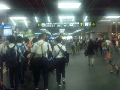 新幹線のホームに移動します。新幹線1編成の乗車人数が一気に移動するのですから、大移動です。