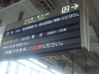 14時39分 定時に、のぞみ号に乗車、出発しました。品川駅到着は16時49分の予定です。