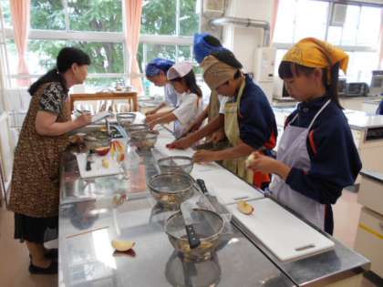 生徒たちのけっこう上手な包丁さばきを拝見しました。