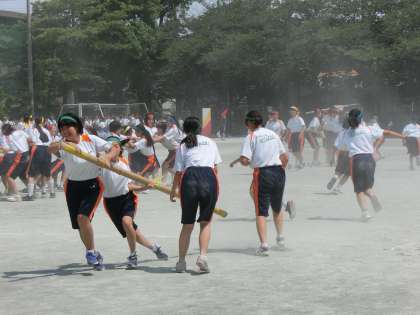 全員がかぐや姫のために、力を合わせて竹を取り合いました。