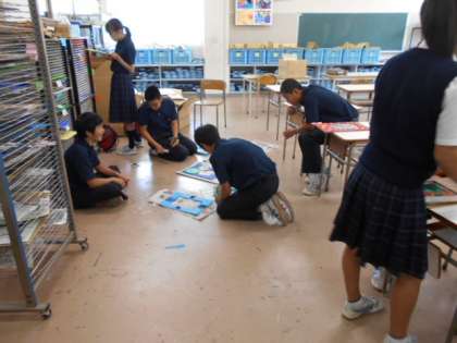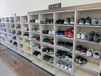 靴入れには、しっかり生徒たちに靴が並んでいます。
