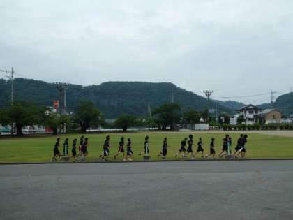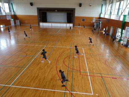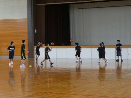 午後はバスケットボール部の練習を見ました。始めにグランドで準備体操やストレッチを行い、1時からは体育館での練習です。水分を取りながら走り込んだ後、基礎練習を中心に行いました。