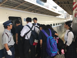前の方の車両には、東京から乗車して来た学校がいっぱいです。