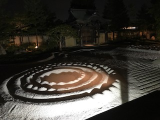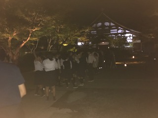 夕食が終わり、近くにある高台寺に向かいます。ライトアップされたお庭が美しく輝いています、