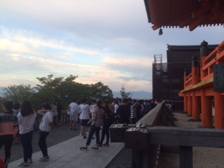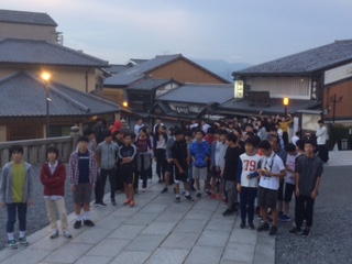 清水寺前で。朝から元気な生徒たちです。