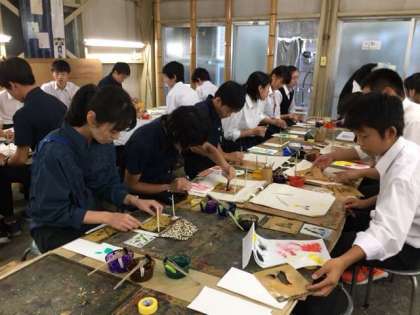 いろいろな色づかいで、作品をつくっていきます。世界に一つしかない作品が仕上がっていきます。苦労のしがいがありそうですね。