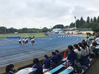 大蔵の陸上競技場で、世田谷区中学校の陸上競技大会が行われます。開会式終わり、競技が始まります。
