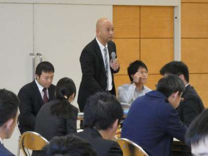 研究授業後の研究協議会では、授業者を代表して3人の先生が、ICT機器の利用についての思いを自評として述べました。