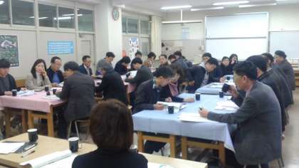 11月16日、韓国の教育関係者の方々が本校の視察に来られました。らる保育園と併設していることで施設の複合化というテーマでの視察です。初めに、校長先生の韓国語によるスピーチで始まり、保育園の設立や中学校との関係などを区の関係者、副校長、らる保育園の園長先生が説明しました。