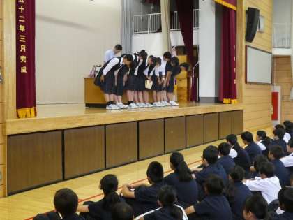 また、水泳部とソフトテニス部の表彰、新しくお見えになった英語科のお二人の講師の先生の紹介がありました。
