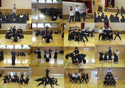 講師の森田先生から、コミュニケーションをとることの難しさと大切さをを教わった後、友達とコミュニケーションをとりながら、縄のない大縄跳びや人間生け花を身体で表現しました。