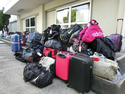 朝には大きい荷物を持って登校しました。