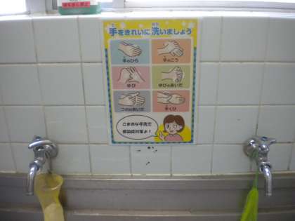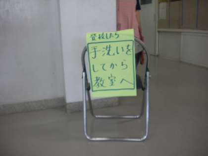 このような表示や先生の呼びかけを行い、今後も手洗いの励行、消毒、近距離での会話の対策等、感染予防体制を整えていきたいと思います。
