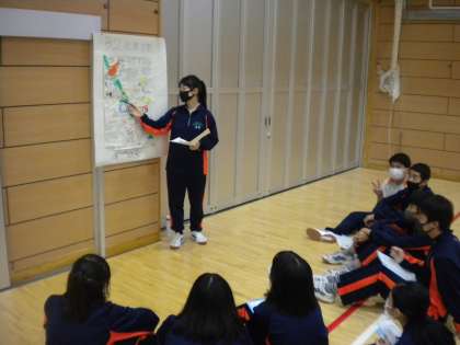 先週の土曜日、2学年は総合の時間にグローバルプレゼンテーションの発表会を行いました。クラス代表になった各学級4名の生徒がポスターセッション形式で発表しました。