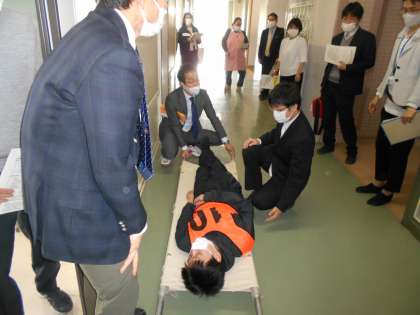 生徒役だけでなく、先生役においても、通報、AED、担架等、運んでくる教員の役割を決め、連携した動きを確認しました。