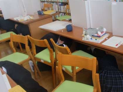 1時間目の授業中には、地震があり、急遽机の下に避難しました。安全確認をしてから、授業を再開しました。