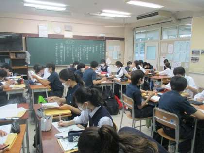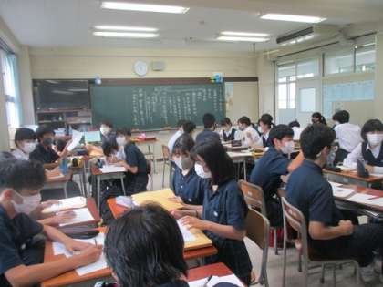 「中学生の主張」作文に挑戦し、それぞれの書いた内容を生活班で発表しあいました。今後、「中学生の主張コンクール」に応募します。