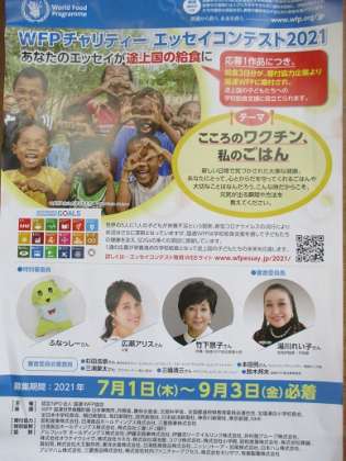 2年・3年の国語の授業で、WFPチャリティエッセイコンテスト「こころのワクチン、私のごはん」の作文に取り組みました。この作文は、応募1作品につき、給食3日分が、寄付協力企業より国連WFPに寄付され、発展途上国の子ども達への学校給食支援に役立てられるものです。