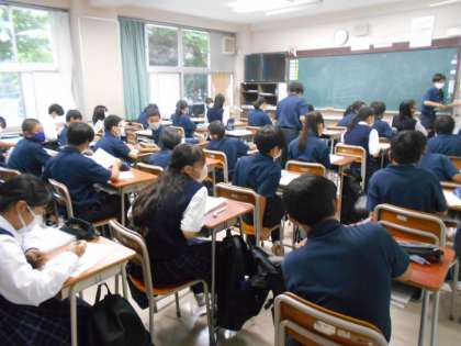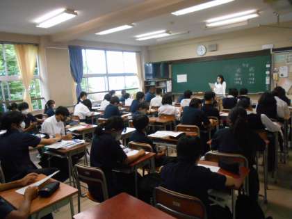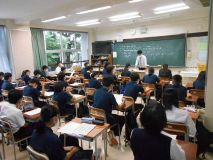 ほとんどの生徒は真剣に先生の話を聞いています。