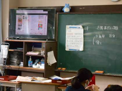 社会は、黒板に「学習課題」を掲示することで、本時のゴールなどを示しています。