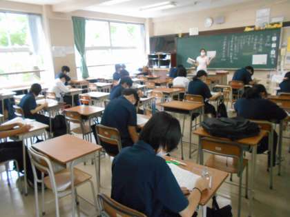 英語は、ディベートの単元で、辞書を使い、自分の考えを英作しています。