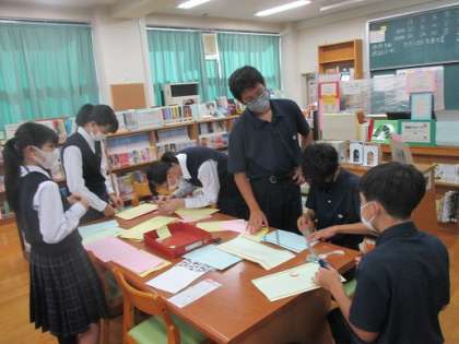 図書委員は、学級文庫の配置・本の紹介カードの作成・図書館イベントの準備を行いました。