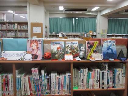 この時期、ハロウィンにちなんで「魔法の世界」を題材にした本のコーナーを作りました。ぜひ読んでみてください。