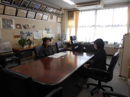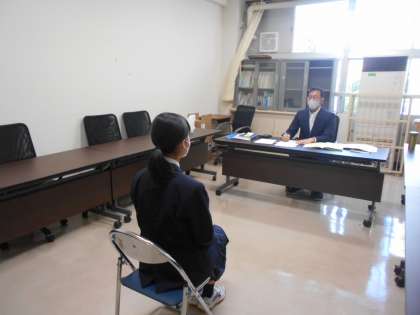 本日から進路に向けての三者面談が始まりました。また、校長先生・副校長先生・本校元校長の江崎先生が講師として、面接練習が始まりました。