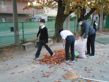 その頑張りのお陰で、校庭にあった多くの落ち葉がきれいになくなりました。