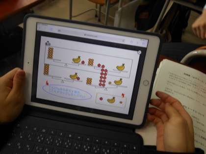 早速多くの生徒が様々なシミュレーション機能を使ってみたり、日常生活で数学が使われている場面についての動画を見たりしていました。