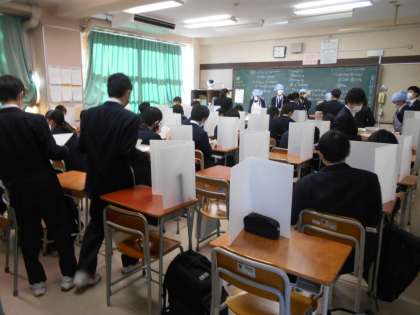 給食準備前の手洗い・パーティションを利用しながらの黙食を続けています。これからも予防に励みましょう。