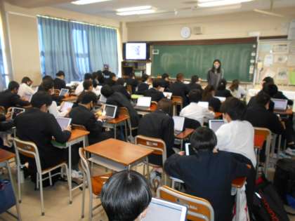 本日の5時間目の学活では、タブレットの使用によるトラブルを未然に防ぐために機能の設定を変更したり、QRコードを読み取ってICTの活用に関するアンケートに回答したりしました。