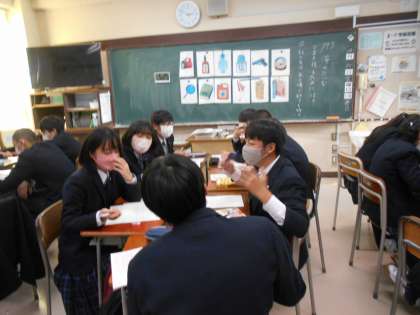 今日の授業では、前回の話で考えたことをもとに「深めたいむ」という文章を読みました。遭難した人たちが、全員で生還するために必要な装備12の品物の中で、役に立つ物は何かと考えました。グループで重要と思われる物の順位について話し合いました。その後、全員が納得する話し合いができたか、話し合い内容を振り返りました。