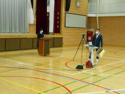 本日の始業式の中で生徒会役員から「多様性を尊重する日」、「難民応援キャンペーン」についての話がありました。