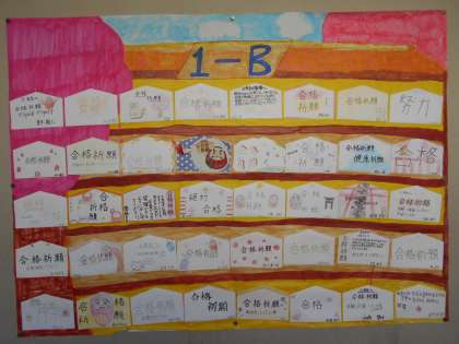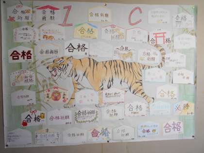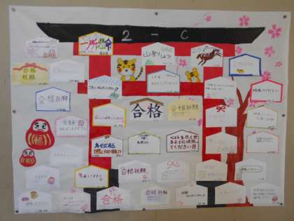 1・2年生が、3年生に向けて「応援メッセージ」を書き、3年生の教室前に掲示しました。3年生はいよいよ受験シーズンですね。体調を整えて乗り切って下さい。