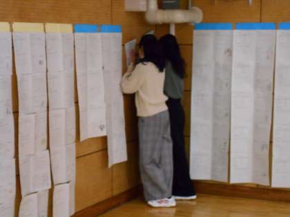 壁を使って、一生懸命に感想用紙を書く姿に、とても嬉しく感じました。