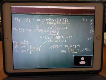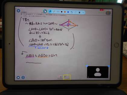 授業によっては、使うプリントをロイロノートで自宅生徒に送ったり、画面共有したり工夫しながら行っています。取り組んだ物はロイロノート提出できます。
