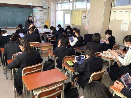 班行動中も係の生徒が写真を撮っていたので、写真も入れながら一人ひとりが作成しました。