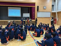 生徒が作成した鶴を実行委員の人たちがまとめています。