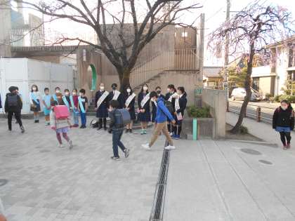 本日は、2022年に入ってから感染拡大の影響で行えていなかった砧南小でのあいさつ運動を再開することができました。本校の生徒会役員や委員会の児童のあいさつに大きな声で返してくれる児童がたくさんいました。