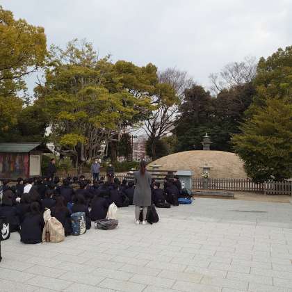慰霊塔に黙祷を捧げたあと、お話をいただきました。