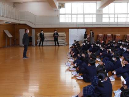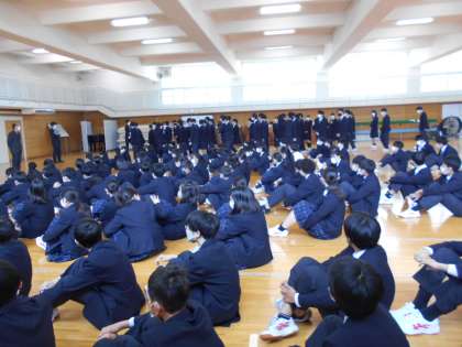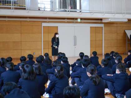 始業式のあと、格技室にて新年度最初の学年集会が開かれました。