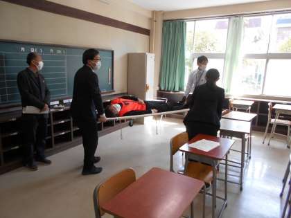 生徒が誤食等をした場合に、迅速に対応できるように、ロールプレイング形式で研修を行いました。