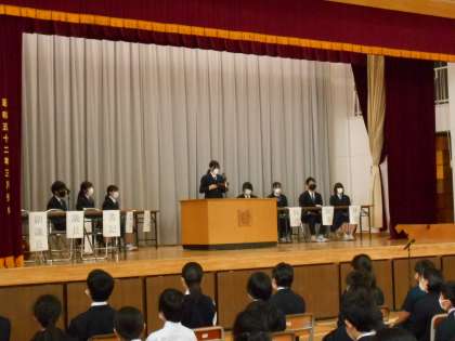 クラス討議、中央委員会、生徒総会を通して、全校生徒1人ひとりが学校をよりよくしていくために真剣に考える有意義な時間が過ごせたと思います。これからは今日承認された活動案をしっかり行動に移していきましょう。