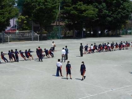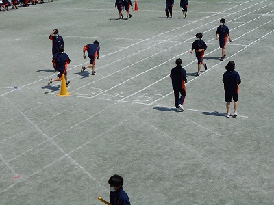 色別対抗リレーのバトン練習と色別綱引きの練習が行われました。
